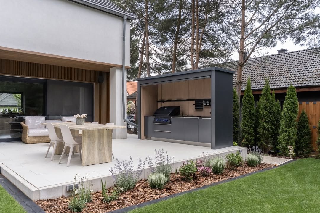 Stell dir vor: Kein ständiges Hin und Her zwischen Haus und Garten – alles, was du brauchst, ist mit einem Handgriff erreichbar. Grill, Spüle, Stauraum und sogar ein Kühlschrank – alles in einer kompakten, durchdachten Box, die Platz spart und dennoch keine Wünsche offenlässt